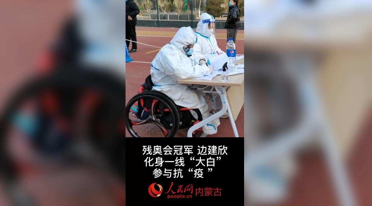 2月28日上午,內蒙古包頭市青山區開展重點區域第五輪核酸檢測,在青山區一小區內,一名坐在輪椅上的“大白”志愿者格外引人注目,但很多人并不知道,這位坐在輪椅上不時抬頭低頭、與居民交流的志愿者,竟是中國第一位女子殘疾人舉重世界冠軍,曾經蟬聯了三屆殘奧會冠軍的舉重運動員邊建欣。