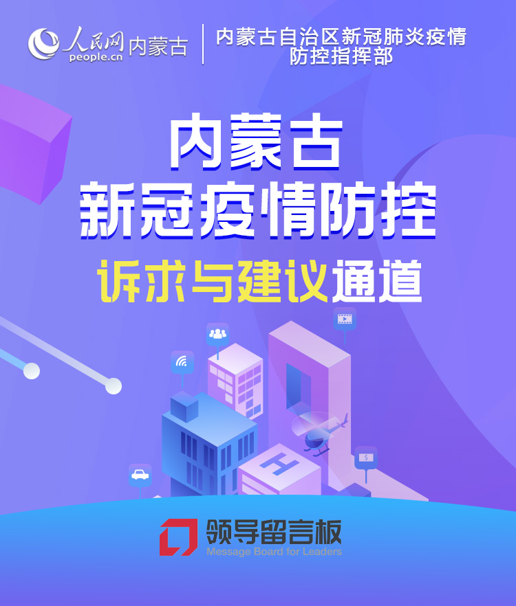 自2022年2月內蒙古發生疫情以來,內蒙古自治區黨委、政府高度重視并持續加強防控措施。為了拓寬群眾訴求、建議渠道,協助自治區有關部門深入了解基層群眾在疫情防控中面臨的各類問題,即日起,人民網聯合內蒙古自治區新冠肺炎疫情防控指揮部在“領導留言板”開設“內蒙古新冠疫情防控訴求與建議通道 ”,傾聽建議,回應訴求。疫情防控期間,如您在生產生活中遇到無法解決的急難愁盼問題,歡迎在這里留言。