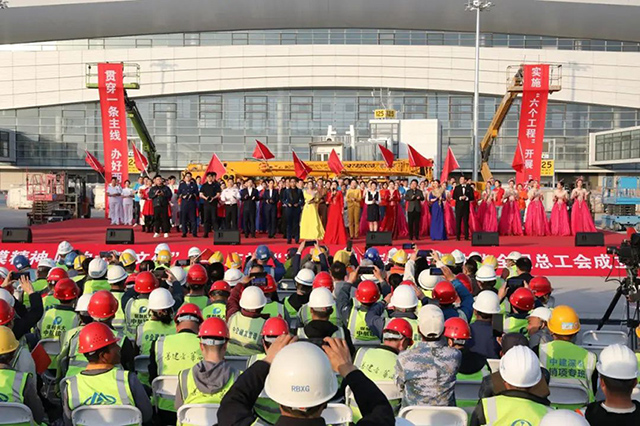 4月25日傍晚,夕陽為正在建設(shè)中的盛樂國際機(jī)場鍍上一層金色光輝。在寬闊的停機(jī)坪上,一場獻(xiàn)給勞動(dòng)者的特殊演出正在上演。