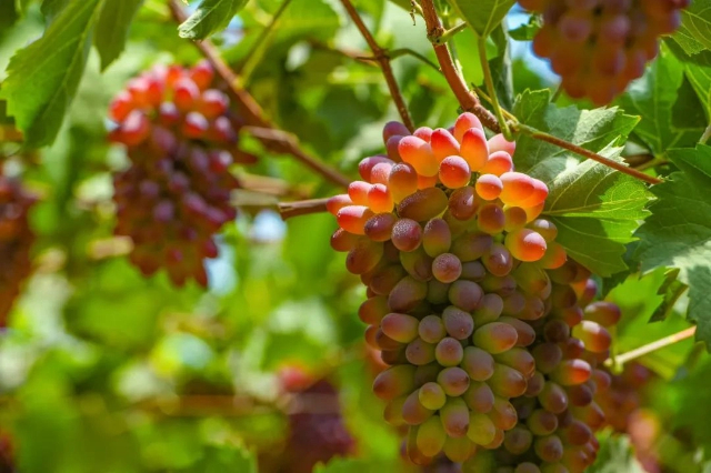 “這串葡萄紫得發(fā)亮,準保甜!”游客張女士舉著剛摘下的“茉莉香”,朝不遠處的兒子喊。