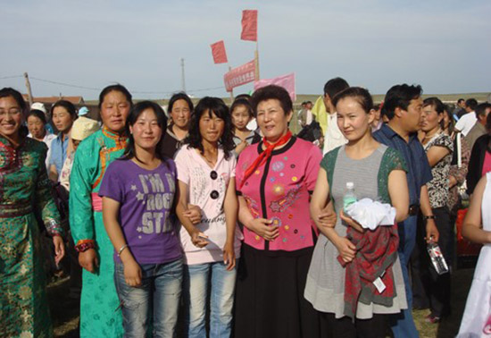德德瑪(前排右二)和牧民在一起。 楊知然 攝
