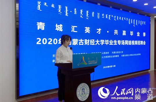 人民網呼和浩特6月12日電 6月12日,由中共呼和浩特市委員會、呼和浩特市人民政府、內蒙古財經大學主辦,呼和浩特市委組織部、呼和浩特市人力資源和社會保障局、內蒙古財經大學就業與創業指導處承辦的“青城匯英才·共贏畢業季”——2020年內蒙古財經大學畢業生專場網絡視頻招聘活動正式啟動。在活動現場,由畢業生代表發言,招聘企業代表現場進行視頻招聘演示。