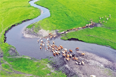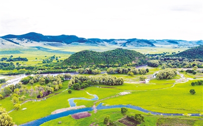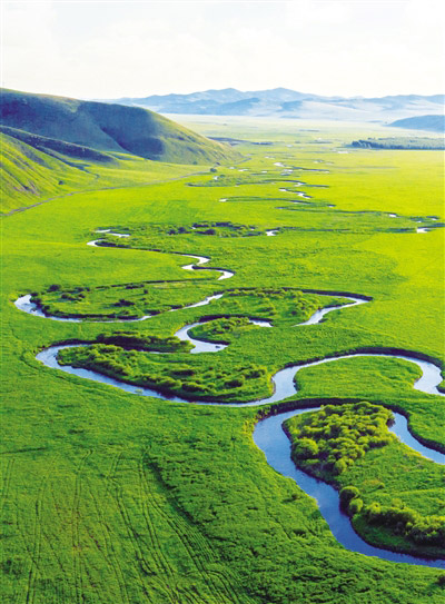 去趟草原吧!烏蘭毛都草原深處小河彎曲伸向遠方,如同一條綿長的哈達飄落在碧綠的地毯上。草甸深處有很多汩汩清泉靜靜流淌,最終融匯一處,形成一條更為寬闊的河流,滋養著草原上的生靈和沿河的人民。河岸上的牛、羊、馬兒飲水后,慵懶地沐浴著夏日的陽光。