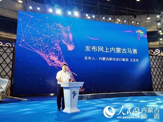 內蒙古新華發行集團總經理王亞東推介“網上賽馬”賽事。陳立庚 攝