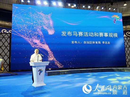 內蒙古自治區體育局副局長李志友推介馬賽賽事。陳立庚 攝