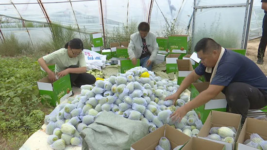 蘇力德蘇木沙爾利格嘎查牧民孟根其勞說:“合作種了3個大棚,最近香瓜和西瓜都熟了,我們愁的銷不出去時候,他們給我們幫了大忙。”