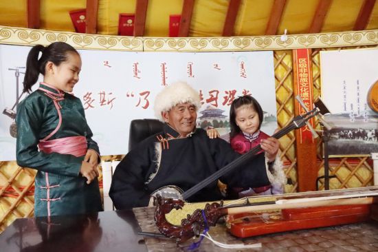今年63歲的芒來巴特爾受父母影響,從7歲開始就接觸鄂托克“乃日”文化。隨著流行音樂盛行,芒來巴特爾發(fā)現(xiàn),越來越多的年輕人對傳統(tǒng)樂器和民歌日漸陌生。為此,他在2012年建起了培訓基地。