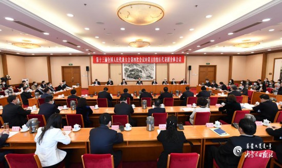 3月4日下午,出席十三屆全國人大四次會議的內蒙古代表團在駐地召開全團會議。內蒙古日報社融媒體記者 袁永紅 攝