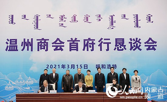 人民網(wǎng)呼和浩特3月15日電 “政府說(shuō)到的一定要做到,我們就是要對(duì)標(biāo)全國(guó)一流進(jìn)一步優(yōu)化營(yíng)商環(huán)境,做到招商安商同唱一首歌。”這是自治區(qū)黨委常委、呼和浩特市委書記王莉霞在3月15日呼和浩特市舉行的溫商首府行懇談會(huì)上擲地有聲的話語(yǔ)。當(dāng)日,60余位企業(yè)家在溫州商會(huì)的帶領(lǐng)下走進(jìn)美麗青城、草原都市,現(xiàn)場(chǎng)與市政府和部分旗縣區(qū)簽署了相關(guān)項(xiàng)目合作協(xié)議,15位企業(yè)家踴躍發(fā)言,紛紛表示愿意攜手首府,共創(chuàng)未來(lái)。