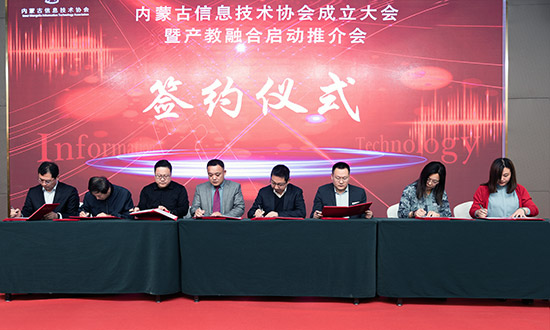 內蒙古信息技術協會和企事業單位、教育培訓機構及金融機構現場簽署戰略框架合作協議。