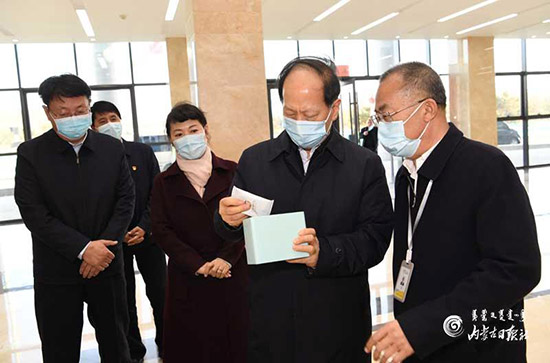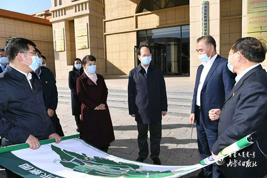 3月24日,自治區黨委書記、人大常委會主任石泰峰來到鄂爾多斯江蘇工業園區,了解遠景現代能源裝備產業園建設情況。 內蒙古日報社融媒體記者 袁永紅 攝