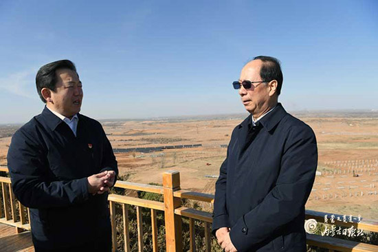 項目建設要符合生態優先、綠色發展的導向,要給老百姓帶來實實在在的好處。考察中,石泰峰反復叮囑各級要堅決貫徹黨中央關于做好碳達峰、碳中和工作的決策部署,謀項目、上項目必須充分考慮生態環保要求,嚴格落實節能減排要求,大力推進綠色低碳循環發展。在遠景現代能源裝備產業園,石泰峰深入了解遠景電極、電芯、模組等產品生產管理過程,實地察看項目建設現場,他指出,鄂爾多斯市要抓住碳達峰、碳中和的機遇,充分發揮自身優勢,加強與遠景科技集團的全方位合作,高起點、大手筆抓好規劃建設,加快打造一個真正意義上的“零碳”產業園區,大力促進用能結構變革,有力帶動相關產業發展,更好推動地區經濟轉型和高質量發展。在天驕綠能光伏發電示范項目基地,石泰峰詳細了解“采煤沉陷區生態修復治理+光伏+”模式運行情況,他指出,山水林田湖草沙是一個大生態系統,要尊重規律、開拓思路,深入研究如何在這個大生態系統下推進“光伏+”產業發展,光伏板下面適合種什么、干什么,要請專家科學論證,謀定而后動,更好把生態修復與鄉村振興結合起來,把企業和農民等各方的利益兼顧好,努力實現生態效益、經濟效益和社會效益相統一。要重視抓好農業領域重點項目建設,堅持一二三產業融合發展,強化科技引領、人才支撐和龍頭帶動,完善農企利益聯結機制,積極培育優良品種,抓好農畜產品精深加工和全產業鏈發展,促進農業高質量發展,帶動農民持續穩定增收。