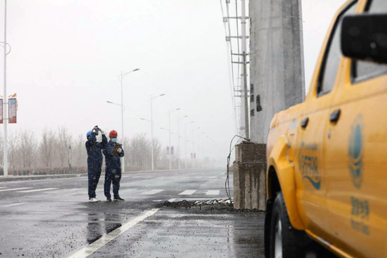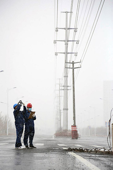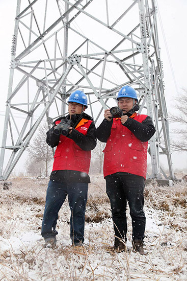 對220千伏前北線開展雨夾雪天氣特殊巡視。張澤林攝