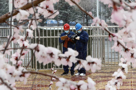 4月12日,內蒙古興安盟地區迎來倒春寒,突降粘雪,氣溫驟減,國網蒙東興安供電公司反應迅速、立即行動,組織各分公司員工對興安地區重要變電站、輸配電線路、重要用電設備等進行特巡,確保極端天氣下電網安全穩定運行。(王健)