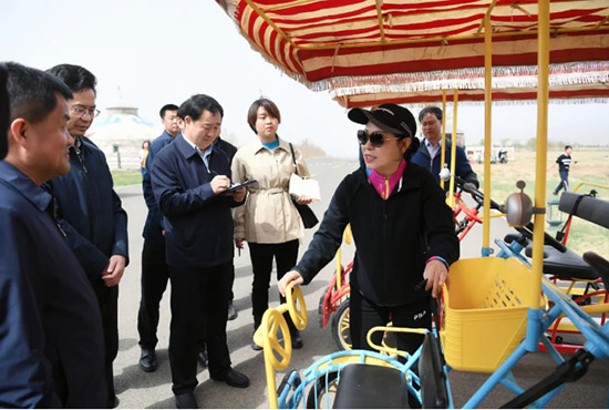 春風(fēng)拂面,綠草青青,敕勒川草原上,游客們騎著游覽車盡情地享受著草原美景。一輛一家三代人共同騎行的游覽車迎面而來,王莉霞親切地同大家打招呼,并關(guān)切地叮囑家長,騎行中一定要把孩子們的安全帶系牢,同時囑咐新城區(qū)委、區(qū)政府主要負(fù)責(zé)人要進(jìn)一步加強(qiáng)游覽車的安全管理,確保游客玩得開心、放心。