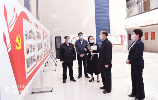 報告會前,石泰峰就內蒙古大學黨史學習教育開展情況進行了調研。在“中國共產黨人精神譜系”系列掛圖前,石泰峰駐足凝思,他指出,中國共產黨人的精神是一脈相承的,不同歷史時期有不同特點,我們開展黨史學習教育就是要學習、傳承和弘揚好這些偉大精神。在認真觀看“那時他們正年輕”專題展覽后,石泰峰說,高校要以開展黨史學習教育為契機,教育學生全面系統深入學習黨的歷史,引導大家更好地學黨史悟思想,激勵大家聽黨話、感黨恩、跟黨走。