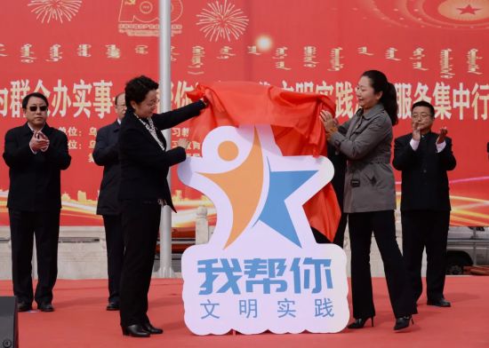 活動中,舉行了“我幫你”新時代文明實踐志愿服務規范標識揭牌儀式,為11個旗縣市區和市直機關工委等5個系統授“我幫你”新時代文明實踐志愿服務總隊旗幟、“我幫你”新時代文明實踐志愿服務隊旗幟,并與黨員志愿者代表進行了“我幫你——來打卡”志愿服務APP掃碼活動。