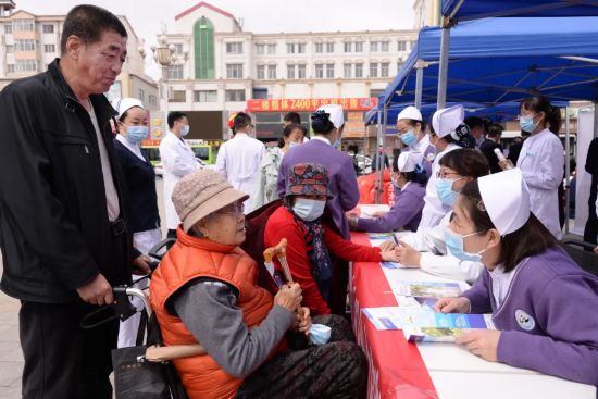 市中醫蒙醫醫院的醫生護士為群眾義診。記者 王俊平 攝