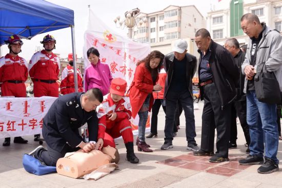 市紅十字會應急救援隊為群眾講授心肺復蘇緊急救援知識。記者 王俊平 攝