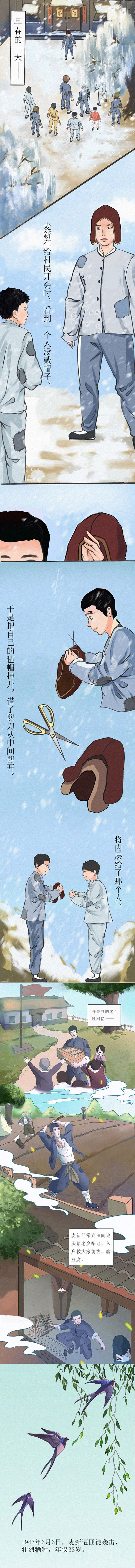 麥新曾將氈帽的里子和外皮一剪為二,和老鄉(xiāng)一人一半;他也曾為百姓拉犁鋤地,被稱為“沒(méi)尾巴牛”。他說(shuō):“我不能成為英雄,但我要成為合格的共產(chǎn)黨員。”