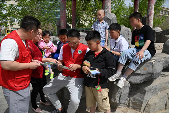 5月22日上午,錫盟生態環境局錫市分局新時代文明實踐志愿服務隊在都市花園小區開展生物多樣性保護宣傳活動,旨在倡導居民群眾乃至全社會形成保護生物多樣性、促進人與自然和諧共生的社會風尚,為推動綠色發展、建設美麗錫林浩特營造良好的社會氛圍。