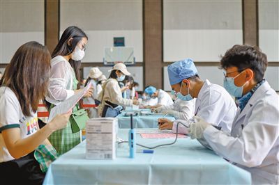日前,針對高校師生人數較多的情況,呼和浩特市衛生健康委組建了4個流動接種組進駐校園,對高校師生開展集中接種。每天接種能力在3000劑次以上,計劃在6月底前完成27所高校26萬余名師生的接種目標任務。