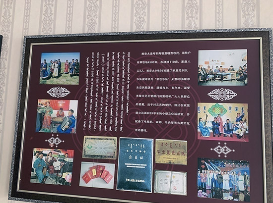 圖為那音太牽頭成立的牧民樂隊(duì)介紹。記者 張棖攝