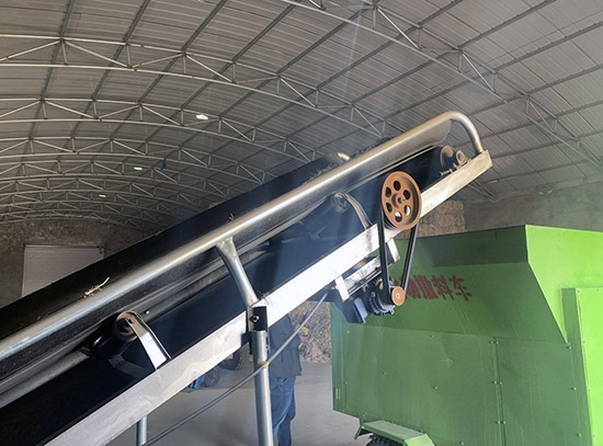 圖為全自動履帶為電動撒料車備料。記者 張棖攝