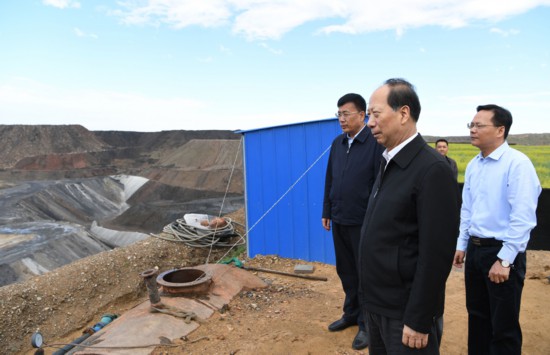 石泰峰高度關注礦區環境整治狀況,實地考察了烏海能源公司路天煤礦地質環境恢復治理工程和原舊洞溝排渣場自燃火點治理項目實施情況。