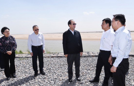 6月8日,自治區黨委書記、人大常委會主任石泰峰來到烏海市海勃灣區,查看黃河海勃灣段岸線防護情況。內蒙古日報社融媒體記者 袁永紅 攝