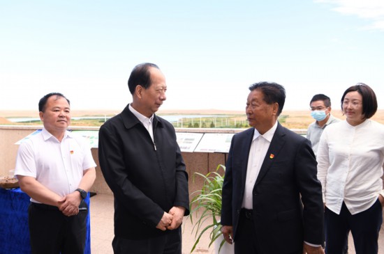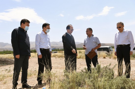 6月9日,自治區黨委書記、人大常委會主任石泰峰來到阿拉善盟阿拉善高新技術產業開發區,查看烏蘭布和沙漠生態治理和黃河生態保護情況。內蒙古日報社融媒體記者 袁永紅 攝
