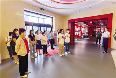 “我志愿加入中國共產黨,擁護黨的綱領,遵守黨的章程,履行黨員義務……”展廳內播放著《歲月無聲 誓言永恒》的畫面,激昂的旋律,鏗鏘有力的入黨誓詞,吸引眾多參觀者駐足觀看。