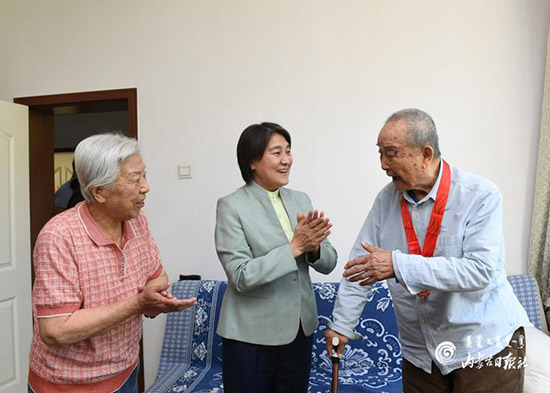6月21日,自治區黨委副書記、自治區主席布小林在呼和浩特看望慰問了獲得黨內功勛榮譽表彰黨員邢旗。內蒙古日報社融媒體記者 韓卿立 攝
