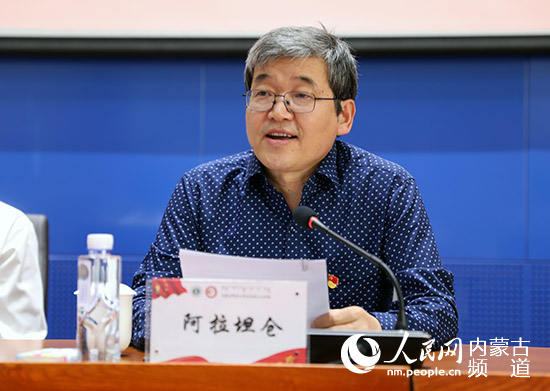 阿拉坦倉在全區大中小學思政課觀摩培訓會上致辭。人民網 李睿攝