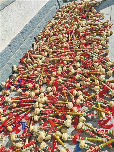 “綁扎普通笤帚需要的時間比較短,綁扎笤帚健康錘就比較復雜了,需要2個小時左右。”“笤帚苗除了能制成日用品,還能制成飾品。”……60歲的“笤帚大媽”賈殿榮正在直播。鏡頭前,一把普通的原苗,一縷尋常的絲線,在她嫻熟的手法中幾經旋轉穿梭,一件普通笤帚制品便呈現了出來。屏幕上的字幕瞬間翻滾了起來,“心靈手巧啊!”“這個怎么賣?”“好棒,好棒。”“笤帚大媽”賈殿榮是赤峰市巴林左旗哈拉哈達鎮哈拉哈達村村民,患有類風濕關節炎,幾年前她趁著農閑的時候,參加了免費開辦的笤帚苗加工技能培訓班,學會了笤帚苗綁扎。2020年,能說會道的她開始直播賣自己親手制作的笤帚苗制品,一年下來掙了16000多元,日子越過越紅火。據了解,哈拉哈達鎮采取了“龍頭企業帶合作社、合作社帶產業大戶、產業大戶帶農戶”的方式延長笤帚苗產業鏈。截至目前,免費開辦笤帚苗加工技能培訓班6輪55期,累計培訓學員2400余人次。企業通過以工代訓方式自主組織培訓班14期,累計培訓學員近520余人次。全鎮現有笤帚深加工專業技術教員24人,熟練技術工人200余人。近兩年,該鎮研發了精品笤帚、工藝品擺件、保健養生等笤帚苗制品共8大類130多個品種,手工綁扎的笤帚苗產品受到了新加坡、韓國、北京、山東等地消費者的喜愛。(記者 趙弘 實習生 盛文華 攝影報道)