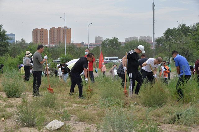 在鄂爾多斯西街與金一道交匯處向北500米路西處,來自回民區屬部門、單位及攸攸板鎮黨員干部、部分人大代表、政協委員按照清理現場劃定的區域開展蒿草清理工作。在活動現場,黨員干部們戴上手套,挽起袖子,拿起鐵鍬、鐮刀等工具,有序進行清除蒿草行動。盡管天氣炎熱,但大家的積極性都很高,頂著嗆鼻的蒿草氣味,每個人都干得熱火朝天,不怕臟,不怕累,將草叢中的蒿草一一拔除,顧不上褲腳鞋子上沾滿的泥土。經過兩個多小時的辛勤勞動,完成了劃定區域內的蒿草清除任務。