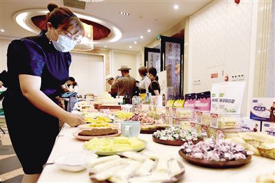 7月10日,消費者在推介會上品鑒奶食。當日,智游錫林郭勒“千里碼”推介會召開,會上推出的“千里碼”串接起錫林郭勒千里草原風景大道上多家旅游景區、酒店、旅游新業態,通過“線上”發行電子卡,讓游客一卡暢享“吃、住、行、游、購、娛”全方位服務,一碼暢游錫林郭勒大草原。記者 巴依斯古楞 攝