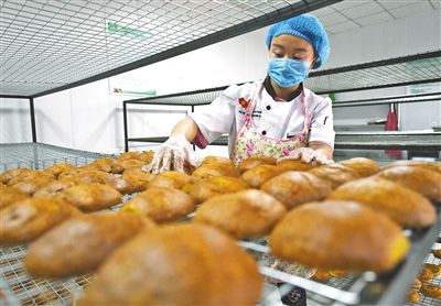 烏海市海勃灣區千里山鎮王元地村面粉廠工人正在制作混糖餅。