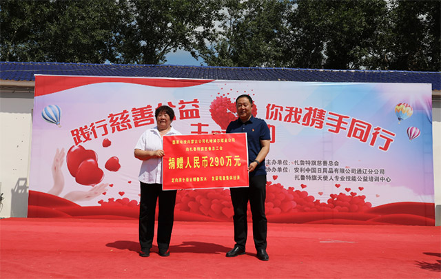 7月10日,國家電投內蒙古公司扎哈淖爾煤業有限公司通過扎魯特旗慈善總會向格日朝魯蘇木黨委捐贈290萬元資金,專項用于扶持格日朝魯蘇木6個嘎查村發展壯大集體經濟。(陳立鵬)