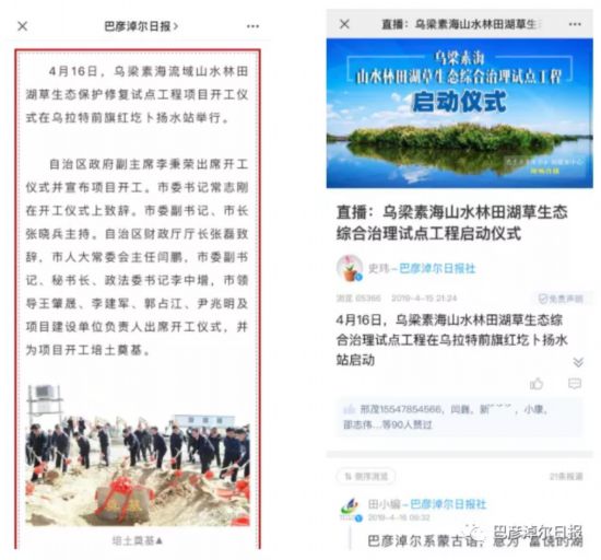 2018年10月23日,投資50億元的烏梁素海流域山水林田湖草生態保護修復試點工程以項目評審答辯全國第一的成績獲得國家批復。