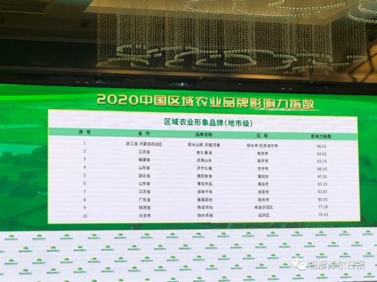 “天賦河套”榮獲2020中國區域農業品牌影響力指數排行、區域農業形象品牌榜位第一名;