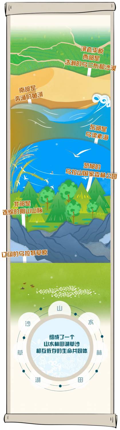 曾經受到污染的烏梁素海、開采過度的烏拉山、不斷東侵的烏蘭布和沙漠,現在展示出了它們綠色美麗的一面;