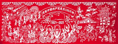 3米長(zhǎng)卷剪紙作品《百年歷程》。
