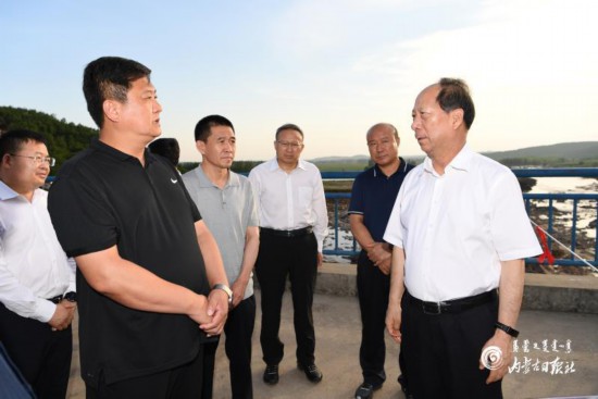 7月21日,自治區黨委書記、人大常委會主任石泰峰深入呼倫貝爾市莫力達瓦達斡爾族自治旗,考察近日發生決口的新發水庫,現場指導防汛備汛和搶險救災等工作。內蒙古日報社融媒體記者袁永紅攝