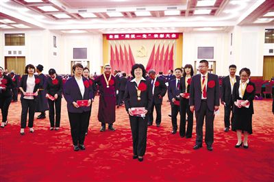 吳秀鳳(中)在全國“兩優(yōu)一先”表彰大會現(xiàn)場。