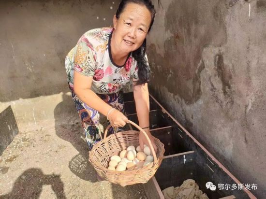 在達拉特旗風水梁鎮鹽店村,村民栗萍蘭正在雞舍里撿拾雞蛋,并進行封裝、打包,以每顆1.5元的價格進行銷售。她告訴記者,今年養了600多只雞。一年純收入是3萬多塊錢。現在的農村雞蛋、雞肉特別受城里消費者歡迎,供不應求。