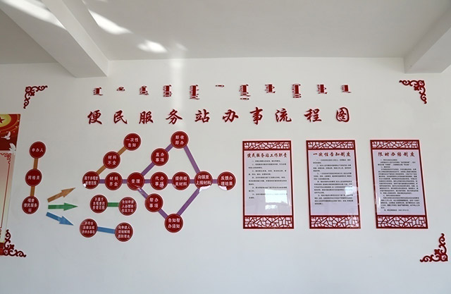 圖為察爾森嘎查黨群服務中心“四個一”便民服務辦理事項流程圖。資料圖片