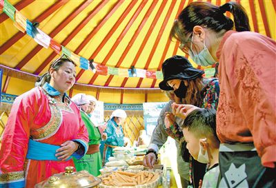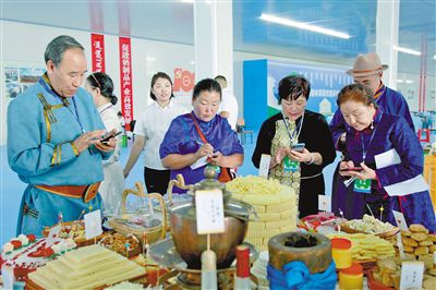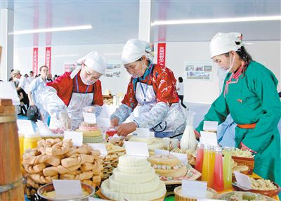 本屆錫林郭勒奶酪評選暨品鑒美食匯安排了奶酪傳統文化展示、奶酪傳承人技藝展演、奶酪品嘗展示及展銷以及奶酪“創新獎”、奶酪現場制作、營銷推廣和包裝設計比賽和展示等活動。在活動區,參賽企業以圖畫展板、PPT或視頻方式展示本企業民族奶制品的包裝設計圖案、設計理念與特色,并陳列相應的包裝產品。