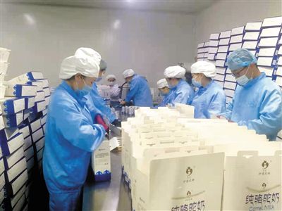 駝奶企業(yè)員工在生產(chǎn)車間包裝純駝奶。