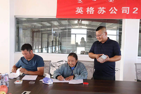一摞摞鈔票整齊地擺放在桌上,養(yǎng)殖戶們依次簽字領(lǐng)錢,8月12日,內(nèi)蒙古英格蘇生物科技公司第一批泌乳駝租賃款發(fā)放儀式正式開始,14戶養(yǎng)殖戶個個喜笑顏開共分紅38萬余元!旗委常委、政府副旗長阿拉騰寶力格出席儀式。